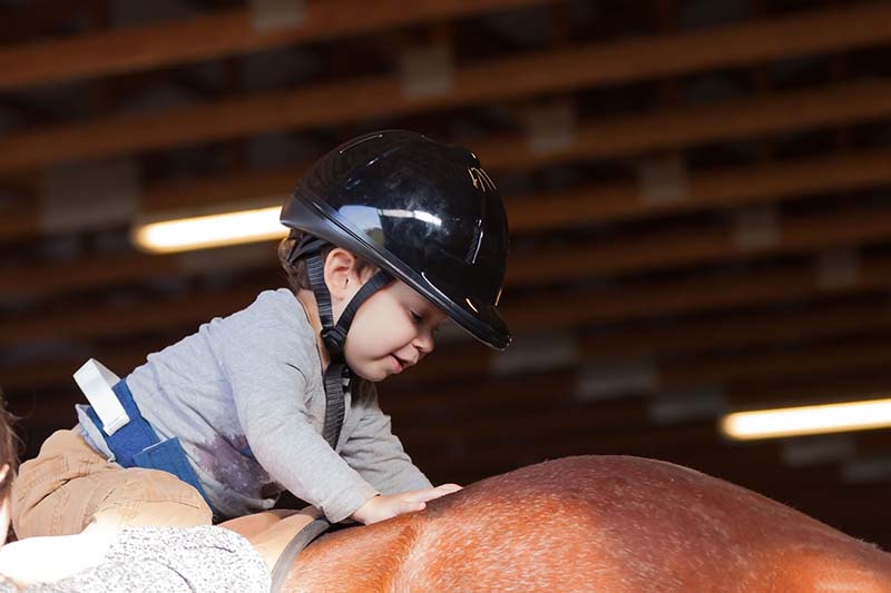 For all sessions occurring in the barn closed toe shoes with a heel, such as tennis shoes, must be worn. Most clients find long pants more comfortable, although this is not required. For equine movement / hippotherapy or riding sessions clients must wear an ASTM / SEI certified horseback riding helmet. Helmets are available for use onsite or may wish to be purchased through a retailer.